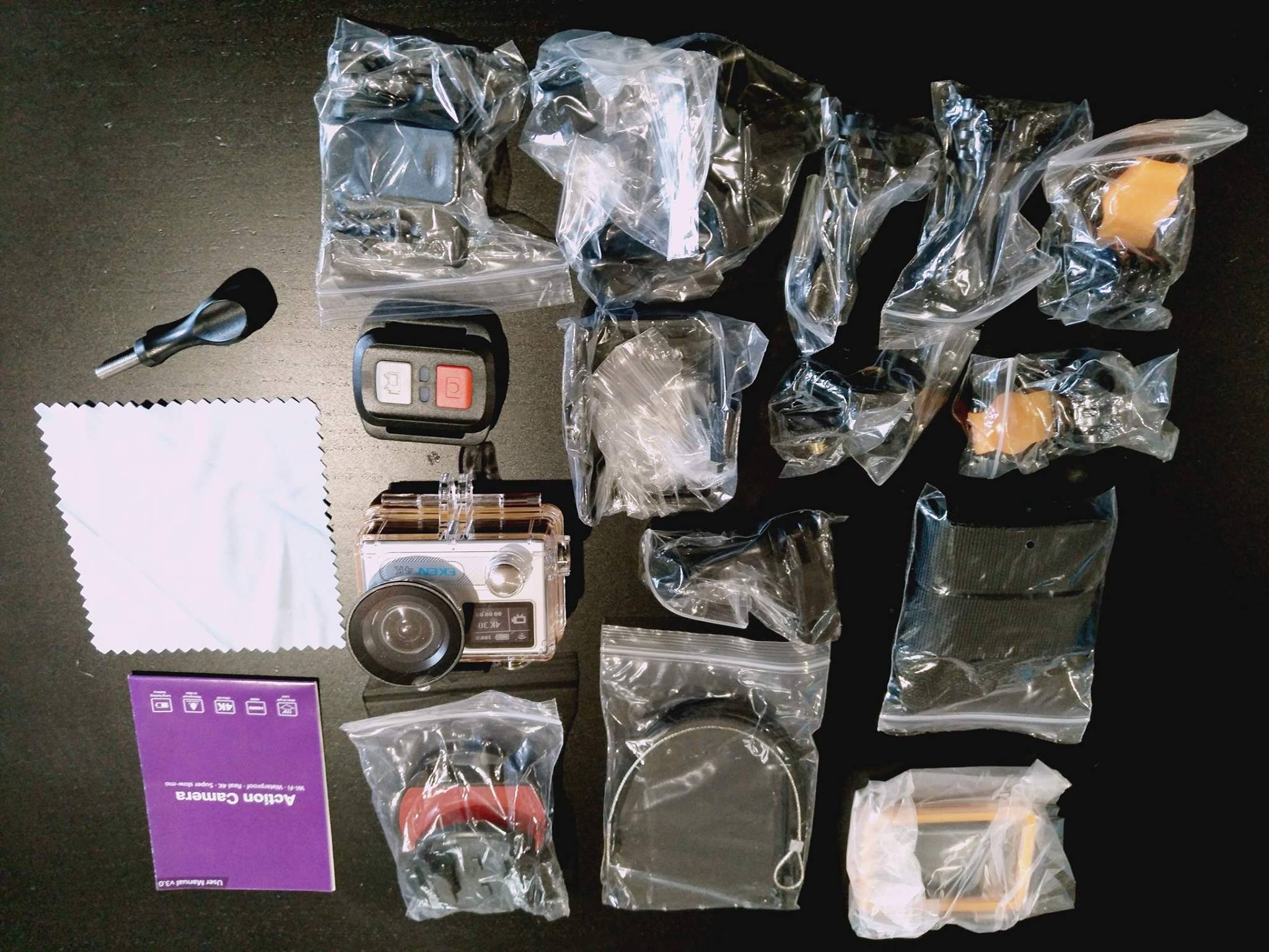 Gli accessori in dotazione sono svariati, dalla custodia subacquea a vari tipi di montature, clip e strip in velcro. Utilissimo è il controller remoto da 2.4G, che permetterà di avviare e interrompere il video in qualsiasi momento, oppure di scattare una foto pigiando semplicemente un tasto!