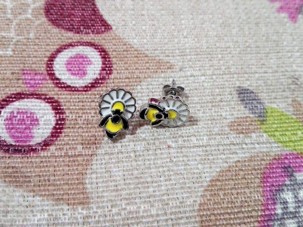 Orecchini margherita e ape, acciaio chirurgico smaltato