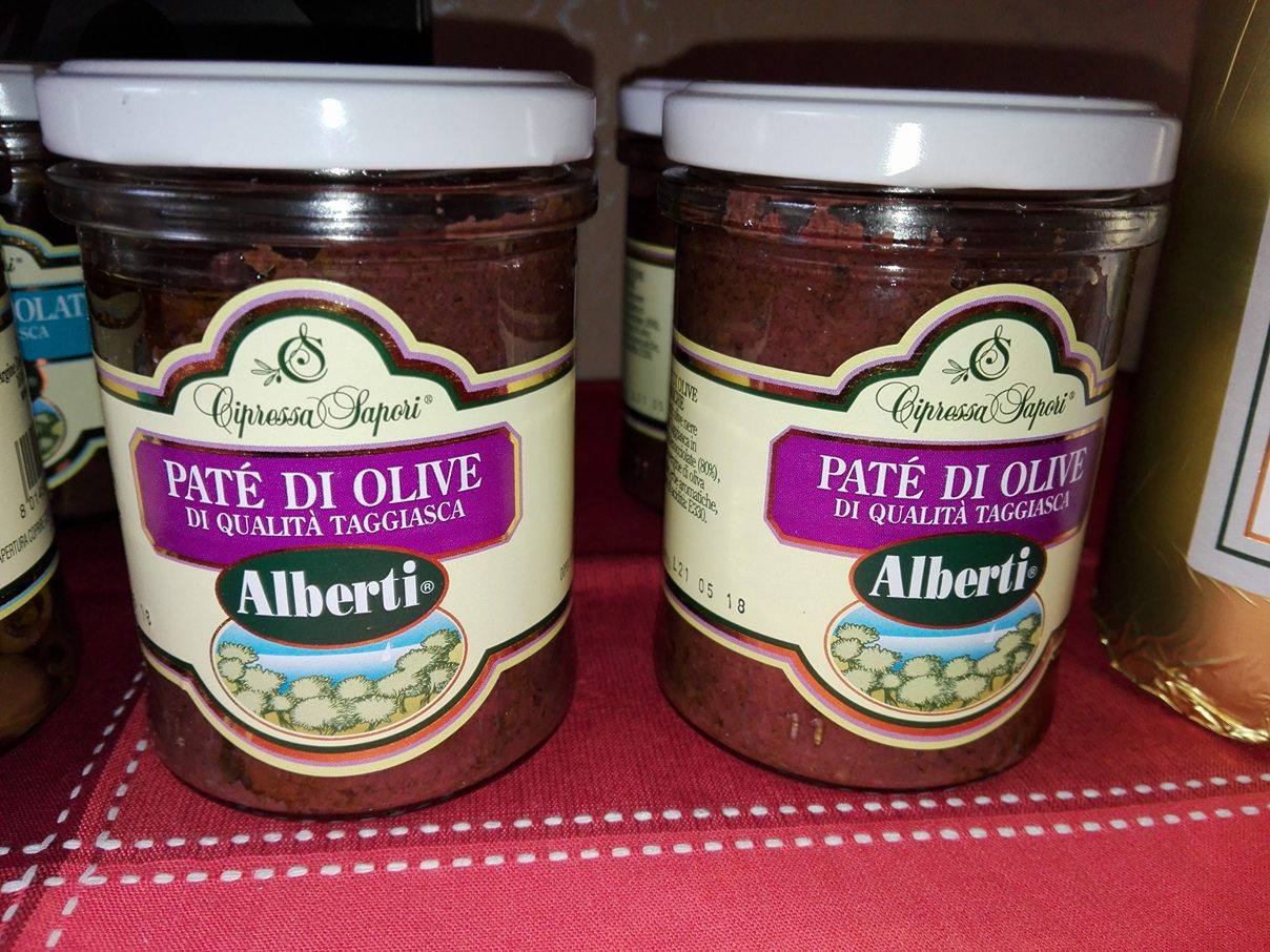 Patè di olive nere "Cultivar Taggiasca" in olio extra vergine d'oliva: il profumato e gustoso patè di olive nere ha una consistenza cremosa e un sapore insuperabile. Esso è il risultato di un processo che parte da olive al gusto punto di maturazioni che poi vengono conservate in salamoia, denocciolate e successivamente ridotte in crema. Ideale per crostini di pane, ma, lo confesso, mio marito usa il patè di olive nere Alberti CipressaSapori anche per condire la pasta e il risultato è prelibato!