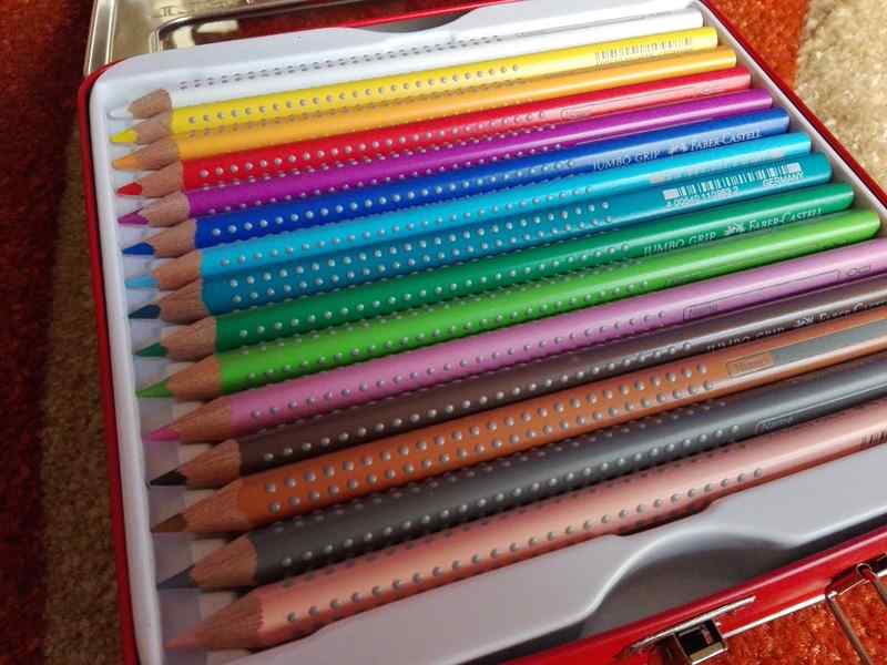 Il Set Jumbo Grip Colour è composto da 18 matite colorate jumbo grip acquerellabili, una matita di grafite, un temperino, uno scodellino per l'acqua, un pennello e tre cartoline da colorare, il tutto in una esclusiva valigetta in alluminio dal sapore un po' vintage e dall'aspetto che promette ore di divertimenti creativi.