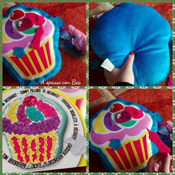 Anche l'altro dei passatempi che voglio suggerirvi è stato un regalo di Natale che vi ho già mostrato QUI. Il Deco Friend Cupcake di Nice Group è un cuscino speciale che scatena la creatività poiché spetta alle bambine completarlo e renderlo un vero cuscino d'arredo per la cameretta. Un'idea simpatica e creativa che offre molte soddisfazioni una volta che il cuscino viene completato. Noi procediamo piano piano e non abbiamo ancora terminato. Morbido e colorato, sulla stampa del goloso cupcake ci sono dei buchetti già pronti: così basterà inserirvi, con l'aiuto del punteruolo, i petali del colore giusto per poter creare un cuscino d'arredo originale e semiartigianale.