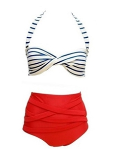 Red-Backless-Off-Shoulder-Stripe-Swimwear