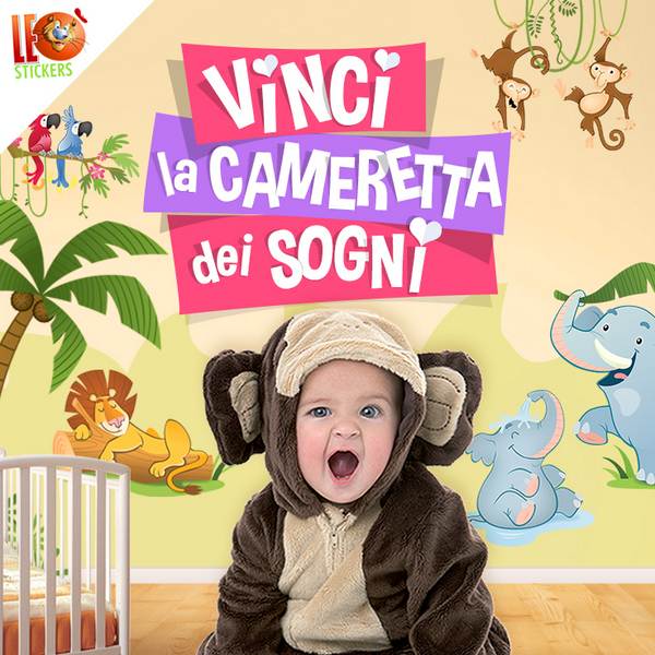LeoStickers è un e-commerce specializzato negli adesivi murali per l’infanzia: prodotti interamente progettati e realizzati in Italia, apposta per seguire i gusti e la fantasia dei più piccini. Ideali per quegli ambienti della casa a loro dedicati, LeoStickers propone tantissimi simpatici soggetti e, da oggi fino al 6 giugno, offre a tutti la possibilità di vincere il proprio kit preferito con l'iniziativa "Vinci la Cameretta dei Sogni".