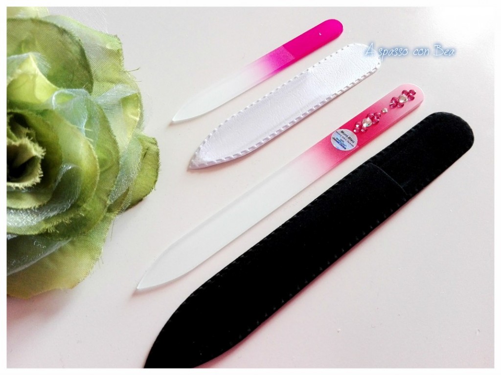 Avendole provate personalmente posso dire di apprezzarle davvero, non solo per l'aspetto ricercato e glamour, ma anche perché le mie unghie non si sfaldano, come spesso mi capita con le lime tradizionali e, con le lime in vetro di Boemia Mont Bleu, impiego metà tempo nel dare la forma desiderata alle mie unghie.
