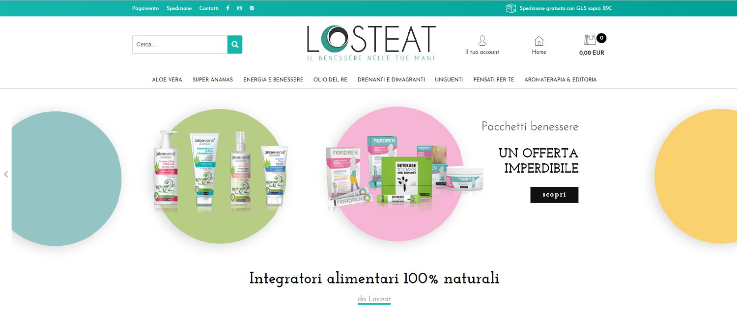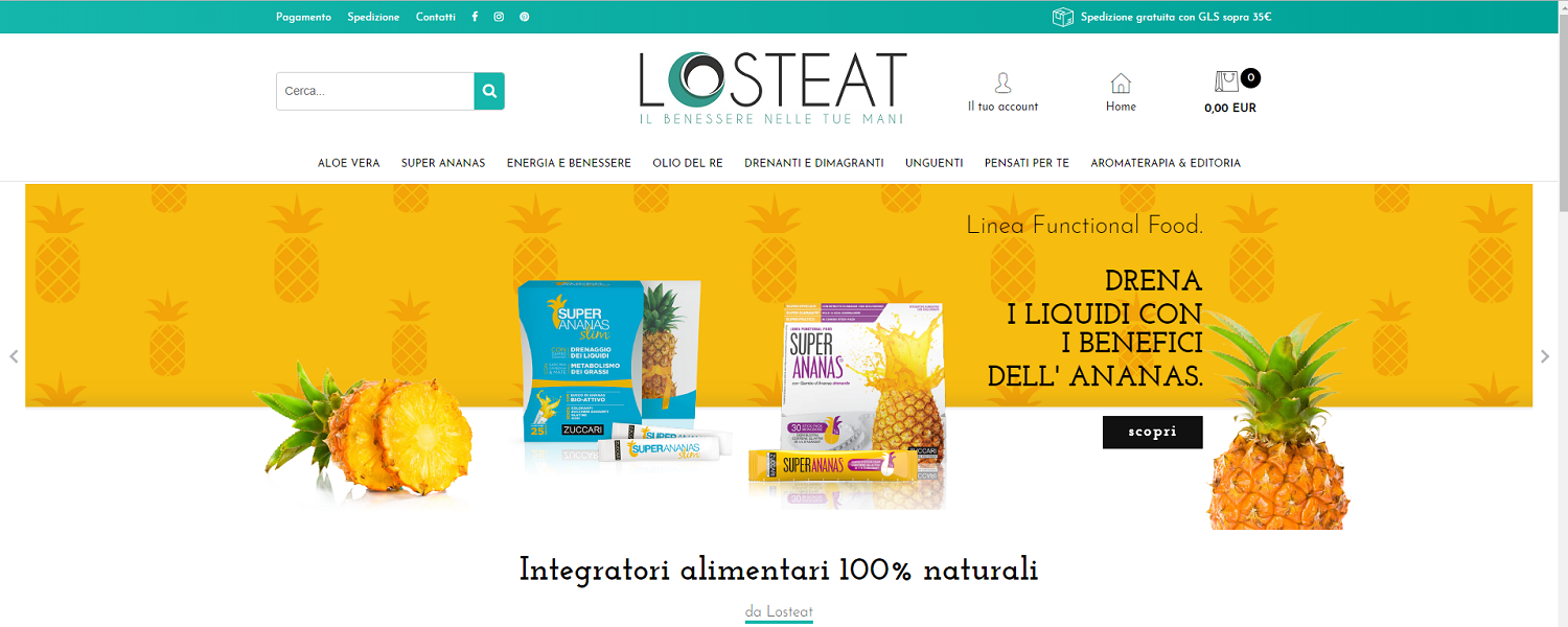Oggi vi presento Losteat che in fatto di integratori alimentari naturali è imbattibile. E-commerce che si occupano della vendita di integratori e prodotti per il benessere generale del corpo e della mente ce ne sono tanti, ma non tutti sono affidabili allo stesso modo. Losteat garantisce in maniera assoluta l'alta qualità dei suoi prodotti, naturali e puri, per una efficacia sicura e senza controindicazioni. Acquistare direttamente dall'e-commerce Losteat significa avere la certezza di non acquistare un qualsiasi, ma uno veramente buono.
