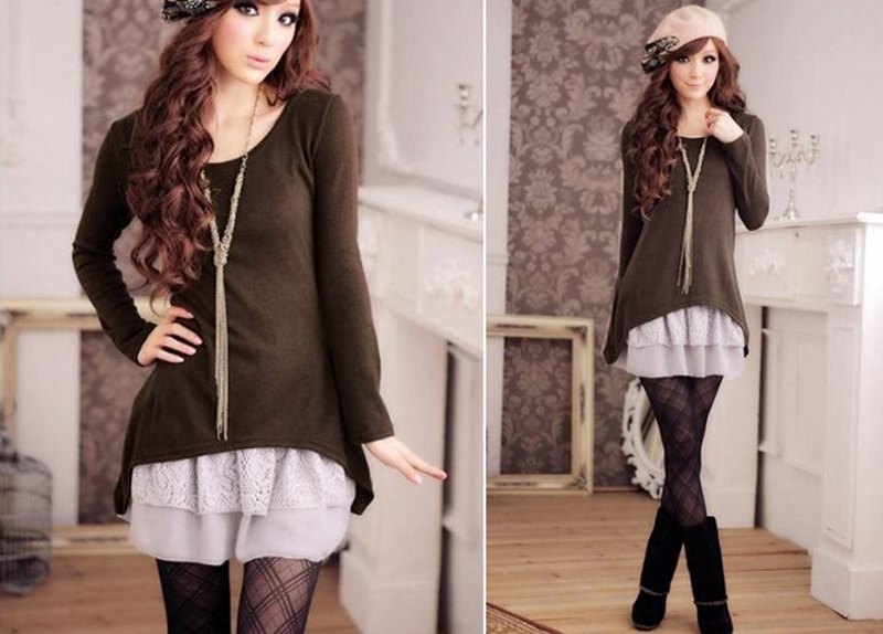 Lovely-long-sleeve-twopiece-knitting-long-tshirt-mini-dress